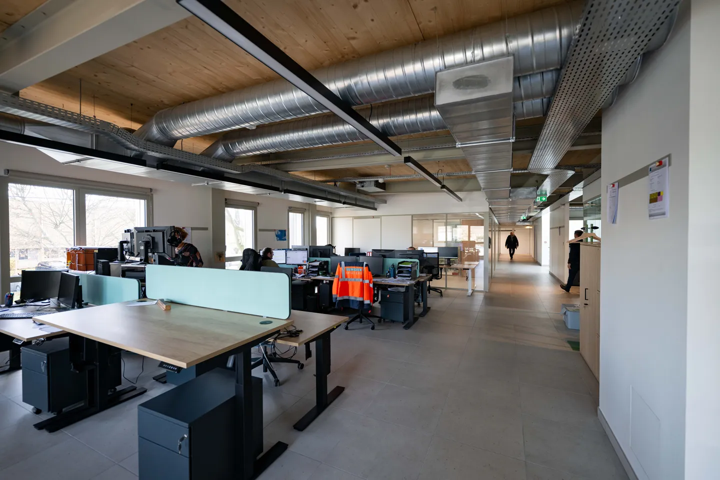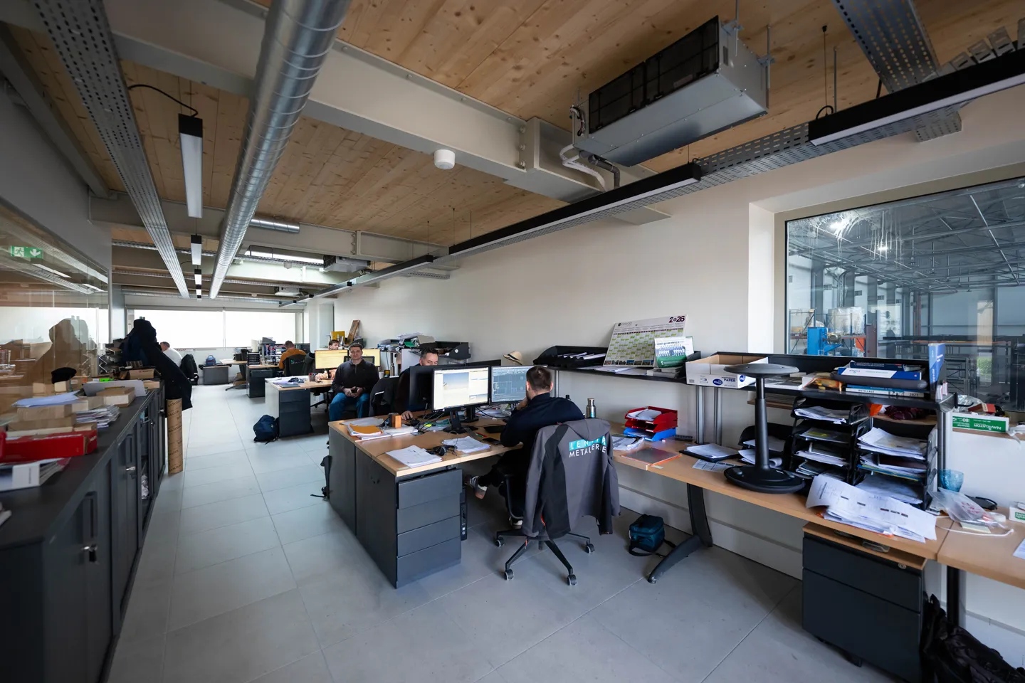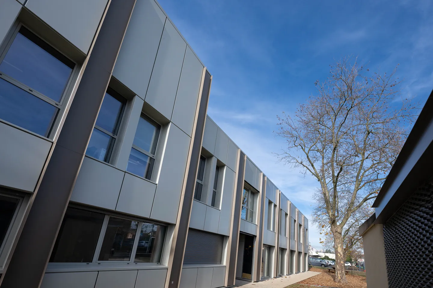 Pensé comme un ensemble cohérent et durable, notre site associe des façades à ossature bois, un habillage extérieur en cassettes aluminium recyclé, une isolation à haute performante en matériaux biosourcés, des planchers bois CLT.