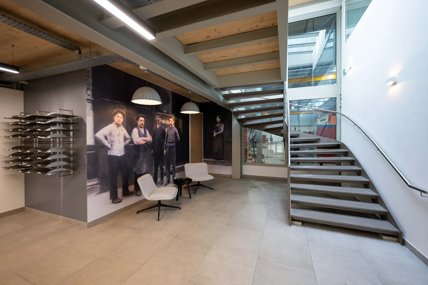 Une valorisation maximale de la lumière naturelle par verrières et sheds, un éclairage Leds intelligent, piloté par capteurs de présence et luminosité.