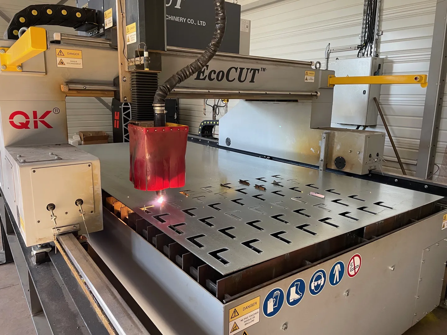 Un atelier connecté intégrant des équipements de dernière génération — poinçonneuse hydraulique à commande numérique, machine de découpe plasma et banc d’usinage 12 mètres garants d’une performance industrielle optimisée et durable.