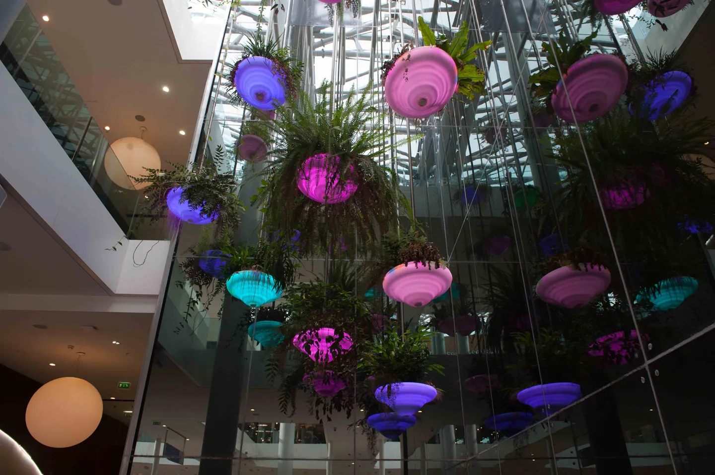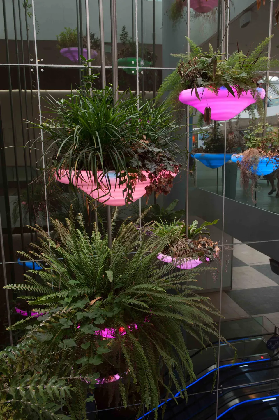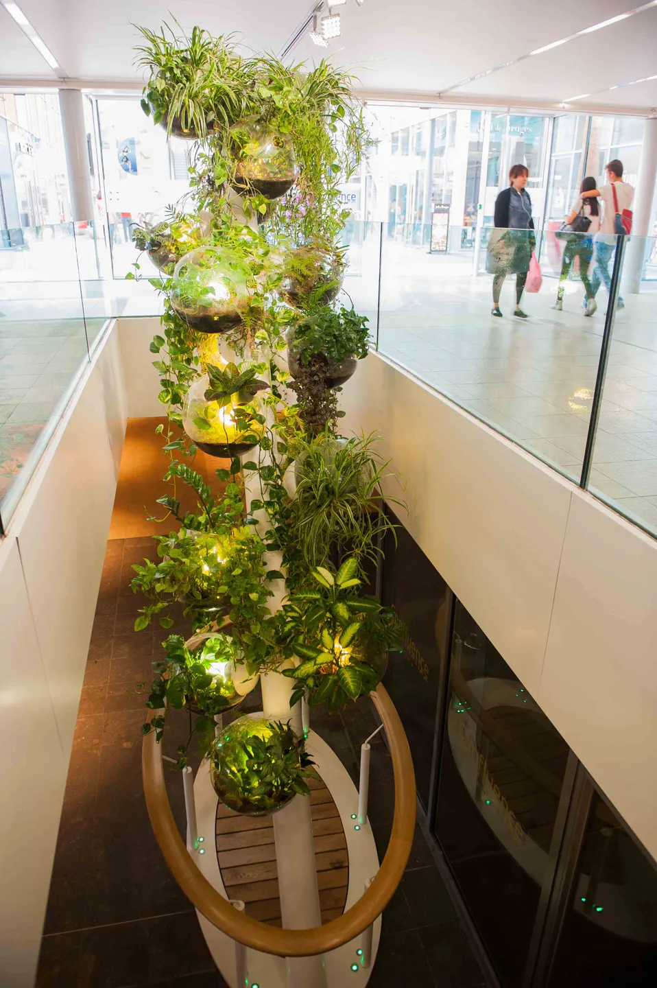 – Suspentes métalliques en inox accueillant des plantes